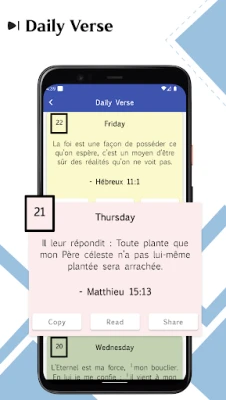 매일의 영적 위안을 찾거나 마음에 깊이 와닿는 성경 구절을 탐색하고 계신가요? 저희 앱은 현대 생활 속에서 공감할 수 있는 방식으로 깊은 신앙적 지혜와 연결될 수 있도록 돕습니다. 특히, 라 비블 뒤 스뫼르 (La Bible du Semeur, BDS) 버전은 단어의 직역보다는 명확하고 현대적인 프랑스어를 통해 의미 전달에 중점을 둡니다. 이는 신앙 초심자, 젊은 독자, 또는 전통적인 번역본이 어렵게 느껴졌던 분들에게 이상적인 안내자가 될 것입니다. 일상적인 묵상이나 성경을 더욱 쉽게 이해하고자 할 때 유용하게 활용해 보세요.