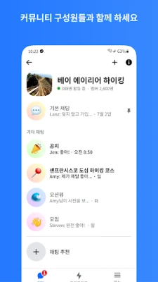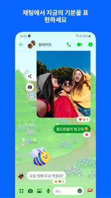 같은 관심사를 가진 사람들과 소통하며 커뮤니티를 형성해 보세요. 학교, 동네, 또는 특정 주제에 대한 그룹에 참여하여 의미 있는 교류를 나누거나, 좋아하는 크리에이터의 공지 채널에서 최신 소식과 독점 콘텐츠를 받아볼 수 있습니다. 24시간 후 사라지는 스토리로 일상의 특별한 순간을 공유하거나, 짧은 메모로 친구들에게 근황을 알리는 것도 가능합니다. 다양한 애니메이션 스티커, GIF, 공감 등으로 지금 느끼는 감정을 풍부하게 표현하고, 끊임없이 업데이트되는 다채로운 테마로 채팅방 분위기를 나만의 스타일로 꾸며보세요.