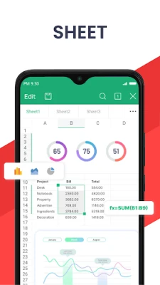 WPS Office는 강력한 AI 기능과 더불어, 폭넓은 호환성과 사용자 편의성을 기반으로 한 핵심 오피스 기능을 제공합니다. 안드로이드 기기에서 워드, 스프레드시트, 프레젠테이션, PDF 등 다양한 형식의 문서를 자유롭게 생성, 편집, 공유하고 실시간으로 협업하세요. PDF 문서의 열람, 스캔, 변환, 주석, 서명, 분할, 병합부터 워터마크 관리까지 모든 작업을 손쉽게 처리할 수 있습니다. WPS Cloud는 물론 주요 클라우드 서비스와의 연동으로 어떤 기기에서든 문서에 접근하고 실시간으로 동기화하여, 중요한 파일을 잃을 걱정 없이 안심하고 작업할 수 있는 환경을 선사합니다. 1GB 무료 클라우드 저장 공간과 편리한 파일 공유 기능은 원격 근무 환경에서도 빛을 발하며, 효율적인 팀워크를 가능하게 합니다.